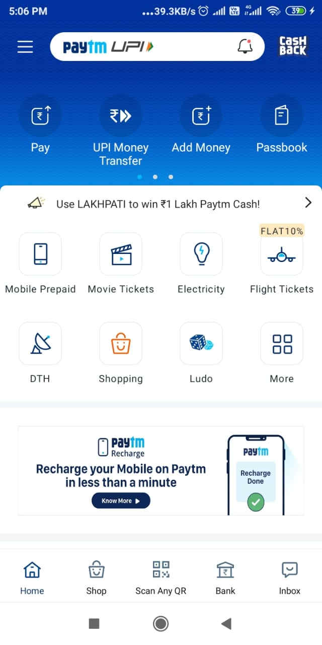 इसके अलावा आपको यहाँ पर passbook ऑप्शन मिलेगा जहाँ पर आप प्रेस करके चेक कर सकते हैं कि आप अपनी पूरी डिटेल्स थी वह दिखा देगा इसके अलावा आप भी richarg कर सकते हैं। प्रीपेड और पोस्टपेड है, वह सेलेक्ट करके आप अपना mobail no. डालकर वह भी रिचार्ज कर सकते हैं। यहाँ पर आपको और भी काफ़ी सारे ऑप्शन मिल जाएंगे ट्रेन टिकट भी book कर सकते हैं फ्लाइट टिकट book कर सकते हैं।